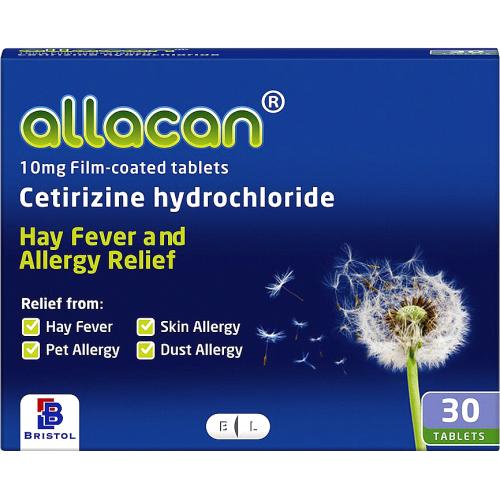 Allacan Cetirizine Hydrochloride Hayfever & Allergy 30 Tablets